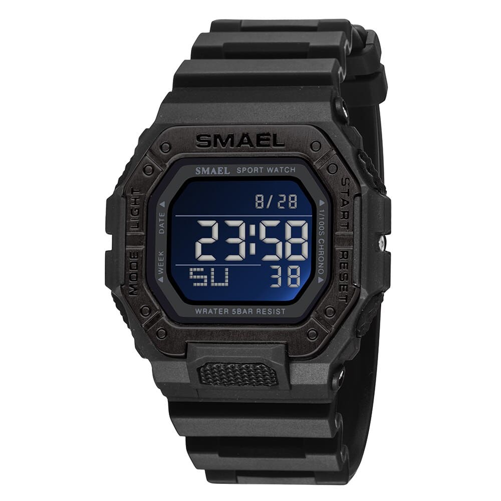 The SMAEL 8059 combines functionality with a modern look. The black design gives it a stylish appearance, and the buckle clasp ensures a secure fit. Whether you’re working out or just hanging out, this watch is a reliable companion.